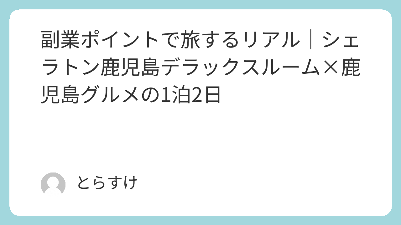 せどりの副業で貯めたポイントを活用し、交通費はキューポの特典切符で、宿泊はマリオットボンヴォイポイントでシェラトン鹿児島に無料宿泊。浮いたお金で鹿児島グルメを全力で楽しめる——これが副業ポイント活用の最大の醍醐味です。
